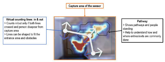 - Contador de entrada utiliza tecnología 4D con una precisión del 99% para contar entradas y salidas.